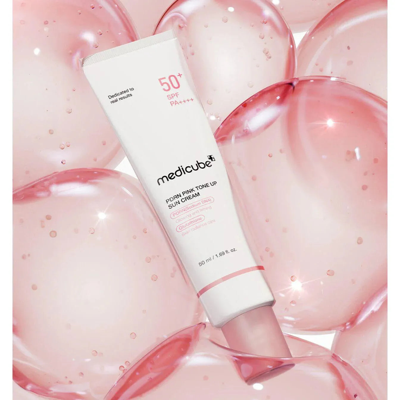 A soft pink tone-up sunscreen that brightens the complexion while offering strong UV protection. It includes glutathione and PDRN for a glowing finish without white cast. Waterproof and long-lasting.